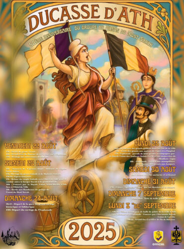 Shop Shop at the Maison des Géants (Giants’ House) 8 items A large choice of articles about Ath and, more particularly about the ducasse and about the giants, is available all year at the shop. Ducasse Poster of the Ducasse 2025 6€ The offical poster of the Ducasse was created by Jérémy Moriau Poster of the Ducasse 20245€ The official poster of the Ducasse 2024 was created by Yohann Dutilleul.. Poster of the Ducasse 20235€ The official poster of the Ducasse 2023 was created by Christophe Bultiau.. Les Efants D'Gouyass (Fr)25€ The DVD Les Efants d’Gouyass retraces the scenes of the ducasse d’Ath as you have never seen. Facies Gigantum Victoire40€ Stamps 5€ The stamps bearing the effigy of the giants are available: eagle, samson, ambiorix, victory, bayard or madame. Postcards 1€ Postcards 1,5€ Postcards 1,5€ Pavé de Ducasse 25€ DVD Grand angle (Fr)12€ Oriflamme The exclusive oriflamme is composed of a strap with 2 rings. It is 180 cm long and 60 cm wide. It comes with bonus gifts. Pins Ducasse 6€ / p Ducasse braid 8€ Ducasse bib 20€ Pennant 11,5€ Ducasse rounded wallet 13€ Microfiber 4€ Mugs 10€ magnet heritage 5,50€ Magnet Giant 7€ Notebook 10€ Bic 4 colours 5€ Bic Mr/Mme 3€ Round badge 5€ Totebag 5€ bottle opener 5€ Gouyasse Child Sticker 3€ Ordinary pencil 2,50€/p Eraser 3€ Slat 5€ Buste Goliath 95€ Head of Goliath 65€ Wooden key ring 5€ CD Toudis Fier 12€